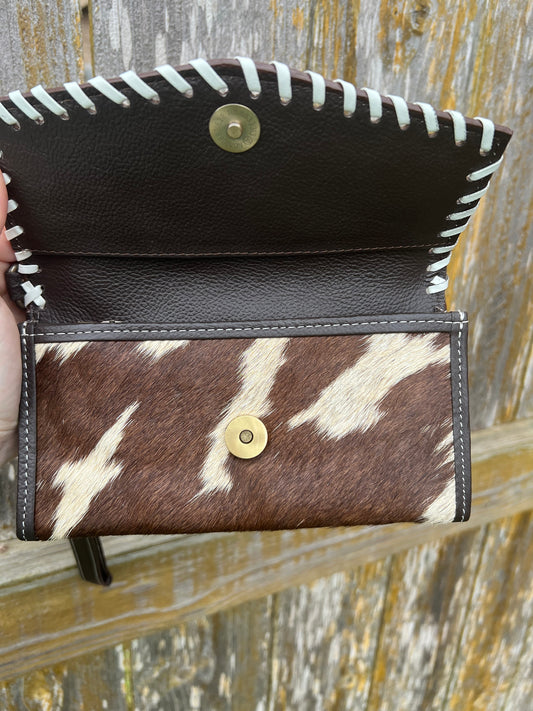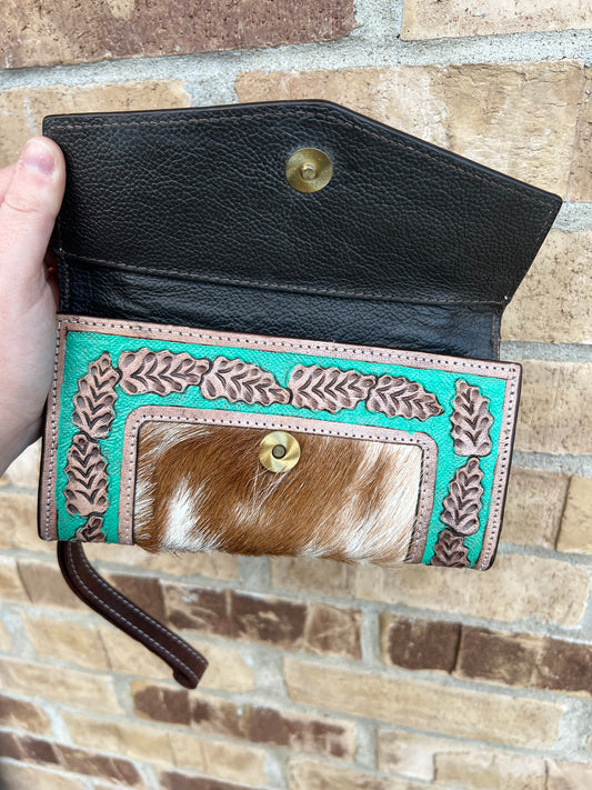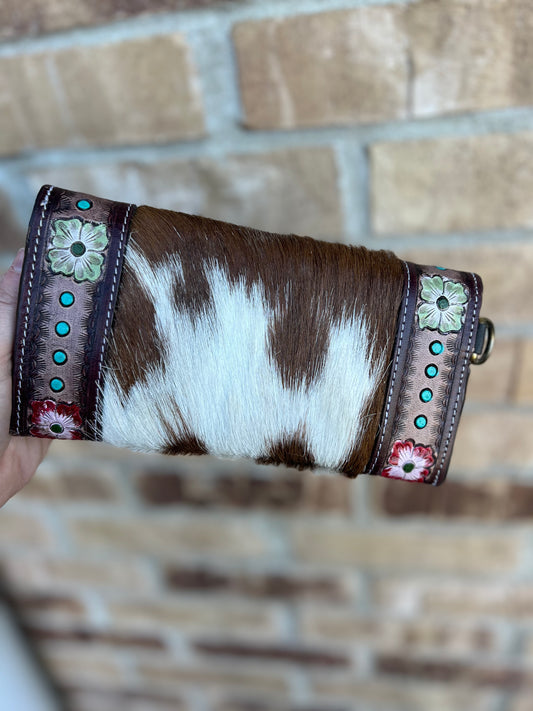 Floral Tooled Leather + Hair on Hide Wristlet Wallet