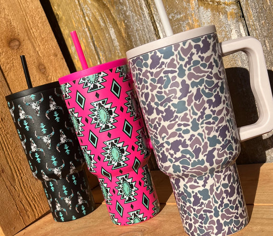 Pink Checkered Cowgirl Balloon Dogs 40 oz Stainless Tumbler with Flip Top Straw Lid