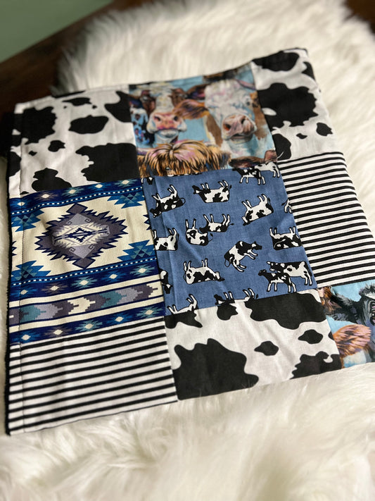 Western Cows Patchwork Baby Blanket - Handmade in Texas
