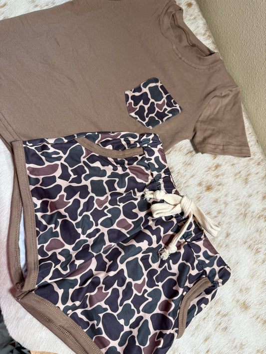 Vintage Camo Pocket Tee & Shortie Set
