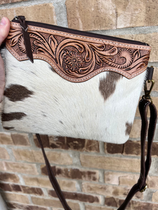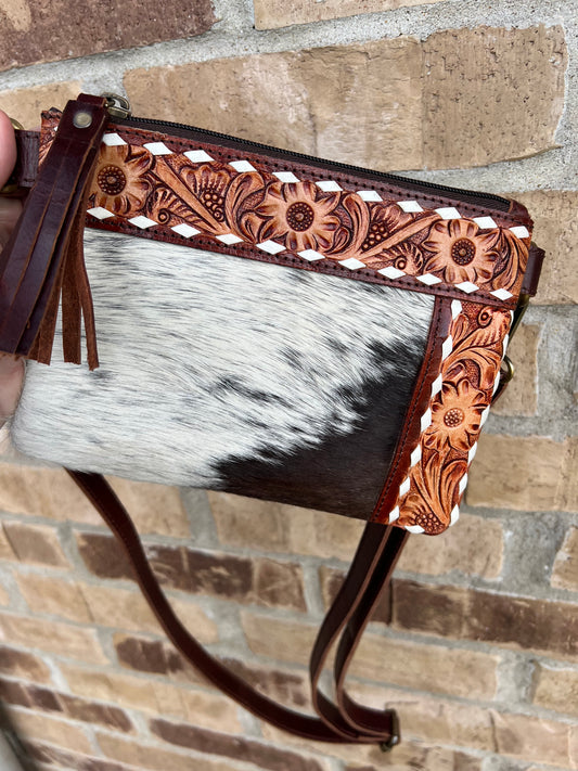 Hand Tooled Hair on Hide Crossbody
