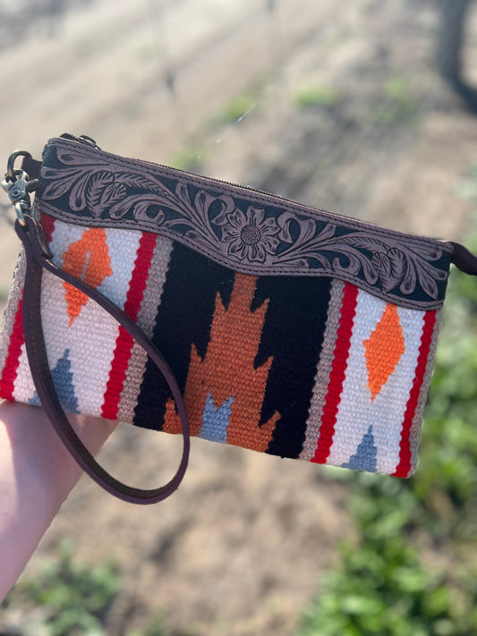 Southwestern Hand Tooled Cowhide Wristlet Wallet