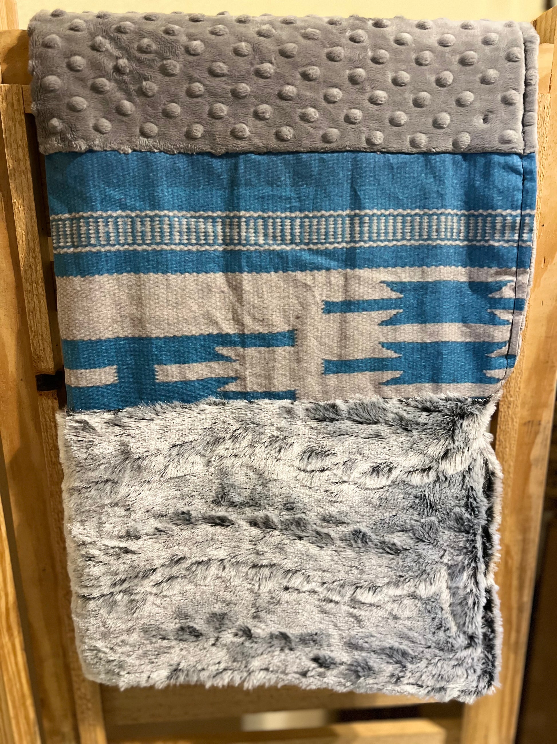 Southwestern Aztec Faux Fur Patchwork Baby Blanket - Handmade in Texas